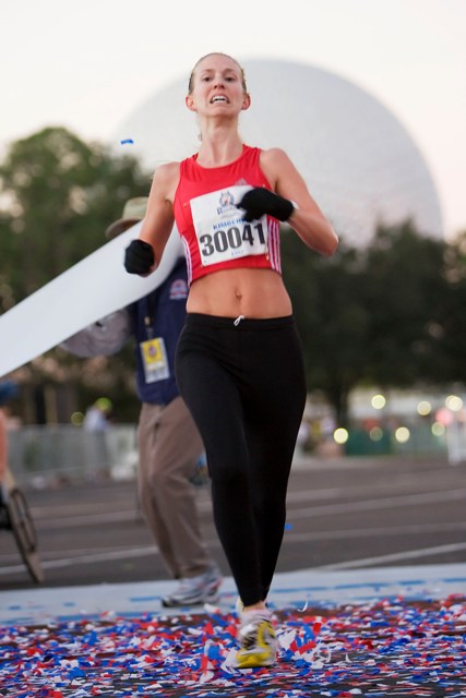 Kimberly Coleman, Louisville, Ky., finished third in the Walt Disney World Half Marathon which took place January 10, 2009. 17,000 athletes entered the annual race which took runners on a journey through Epcot and the Magic Kingdom theme parks. The 16th annual Walt Disney World Marathon takes place January 11th, where athletes will run 26.2-miles through all four Walt Disney World theme parks. (Matt Stroshane, photographer)