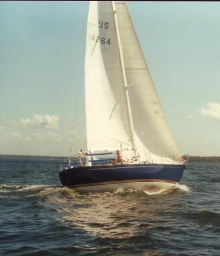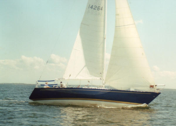 Contact : Gene Lagasse Additional information : 37 Palmer Johnson custom one design, Marrakesh Express, by Yves Tanton of Newport Rhode Island. Refit 2005. 37'4" loa, 11'6" beam, 6'-10" draft. New Awlgrip, Aristo Blue with Cordovin Gold cove molding and boot stripe. New running rigging including 40' of genoa lead tracks - inside and outside, 5 to 1 purchase on mobile cars with swiveling cams, new traveler, clutches, rod rigging, 6 Barient Titanium winches, 5 barient stainless. The bottom, keel and rudder have been faired for racing. PHRF 163
