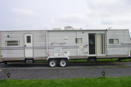 38 foot 2 bedroom slideout,2 awnings, screen room, sleeps 6 to 8, 3 way