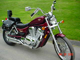 Contact : Harold Additional information : Only 3800 miles, garaged, maroon, Cobra pipes, saddlebags, brand new battery, mint condition, must see. Photo Loading Below..